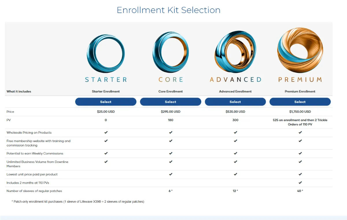 As with any MLM, there are multiple ways to make a profit. LifeWave brand partners can purchase products at wholesale prices (i.e. X39 at wholesale is $99.95) and then sell for retail ($149.95) to the customers, and retain the $50 profit, OR have a website to sell the product at retail prices, and the company will transfer the $50. Either way, the brand partner will get $50 and 77PV, which will be credited towards maintaining their rank. Additional commission is earned by enrolling or upgrading people to the top three of the four enrollment kits, which are called core, advanced, and premium.