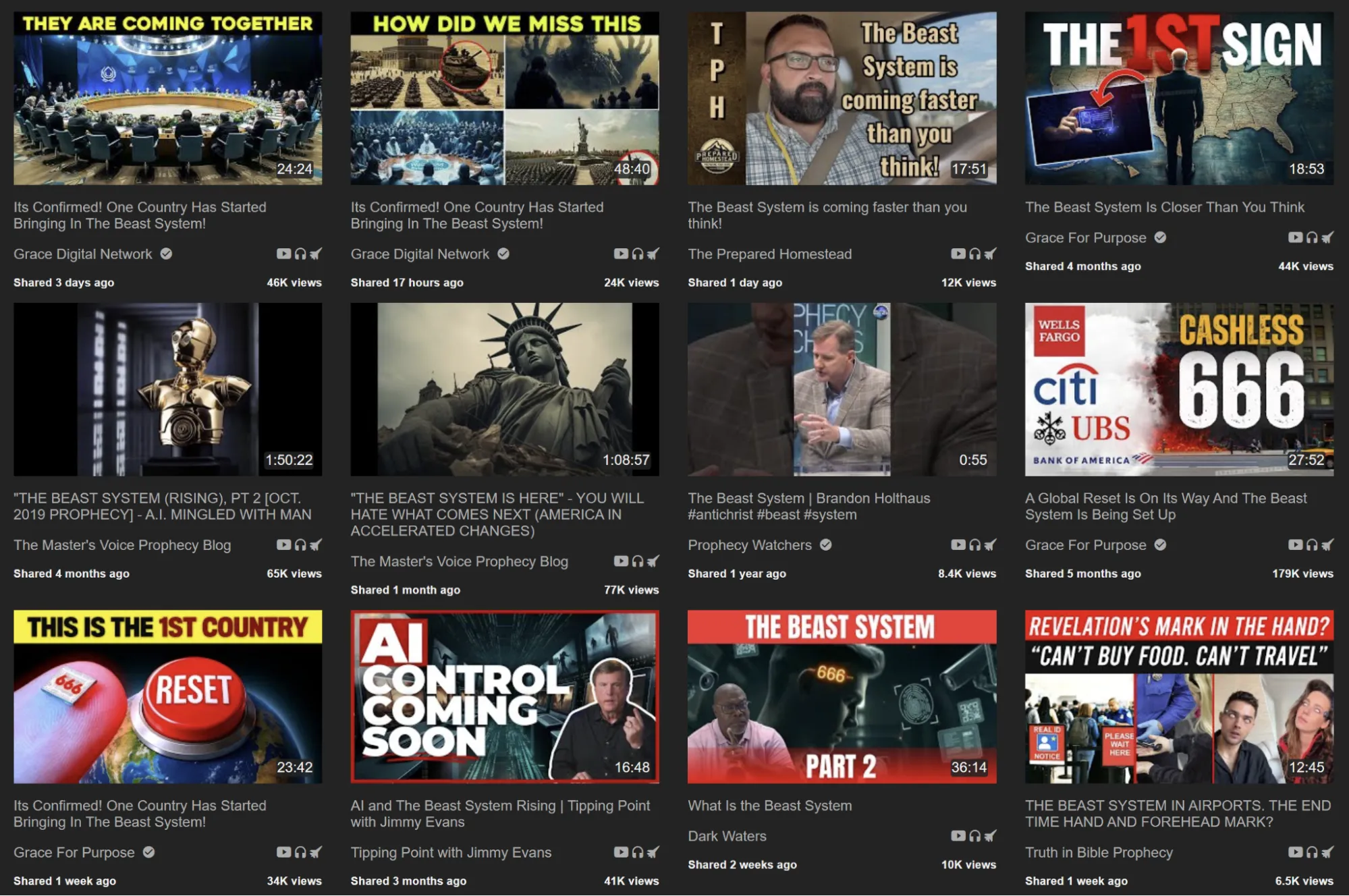 But there’s a recent idea that the Beast System, a technological tool for tracking each and every one of us, has either already been implemented or is about to be deployed. This System will apparently be used to track our every move, control our every decision and/or decide whether we can buy or sell goods and services. It’s surprising just how many videos there are on YouTube (many of them filled with AI slop and stock footage) warning everyone of this supposed Beast System: