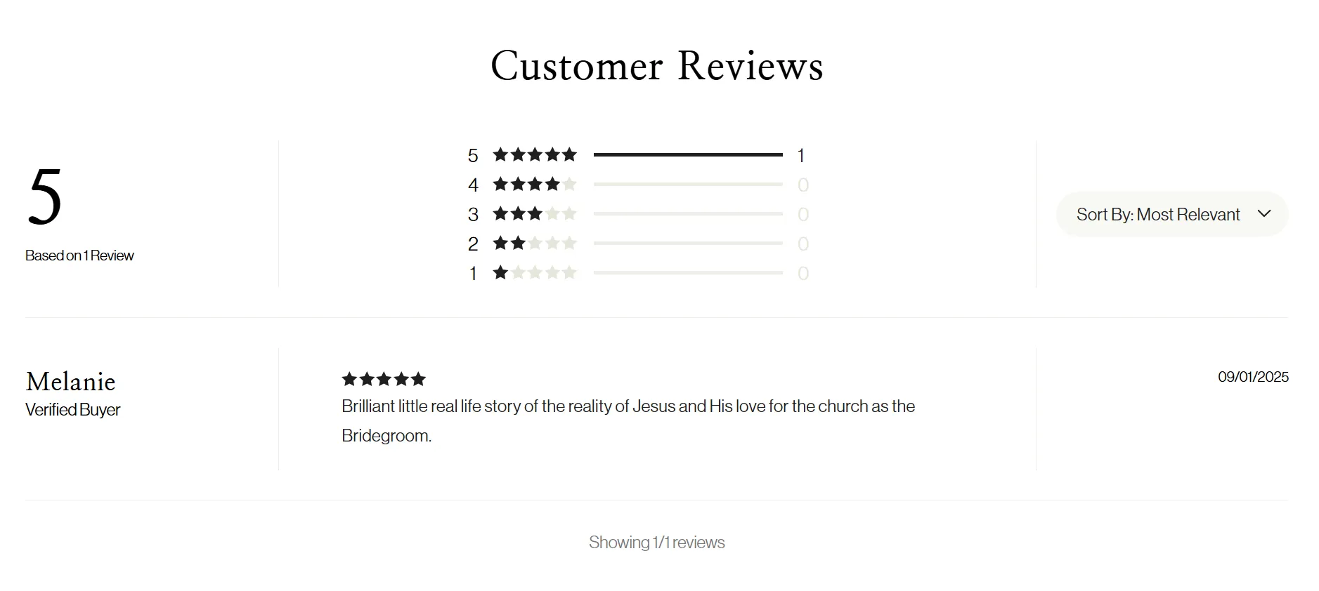 The book is currently on sale on Amazon for about $8, but at only 25 pages I think I’ll save my money for something more substantial. Although Amazon has no reviews, a single 5-star review on The Nile (where a paperback copy is being sold for $27) is somewhat suspiciously written by a verified buyer called “Melanie”, and says “Brilliant little real life story of the reality of Jesus and His love for the church as the Bridegroom.”