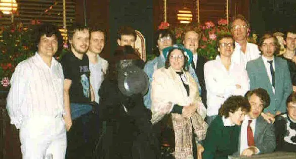 Source | Priscilla Langridge (veiled and obscuring their face) with Mary Guillermin to their immediate right, at the 1987 Personal Computer World show.