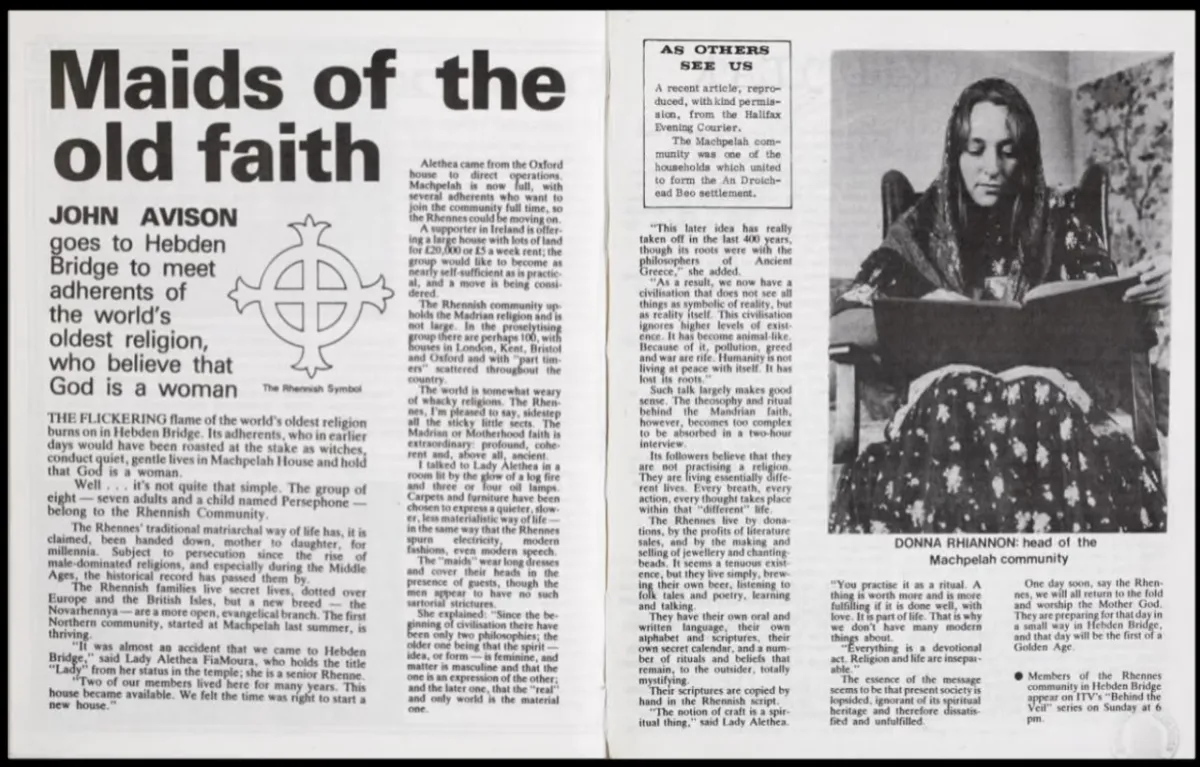 The Lux Madriana further distinguished itself by allegedly breaking away from the tradition of secrecy and starting open groups, as well as courting more media attention. Through the late 1970s and the 1980s, the Madrians and their subsequent iterations would advertise in various alternative, lesbian, and wicca/pagan publications. They were also the subject of multiple televised profiles. Although many are lost or not freely available, those aired by RTÉ in Ireland are available for free viewing here.