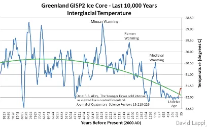 We are currently living in the interglacial period of an ice age and the planet, (with many temperature fluctuations) has continued to cool, albeit with a number of up-ticks, over the last 10,000 years: