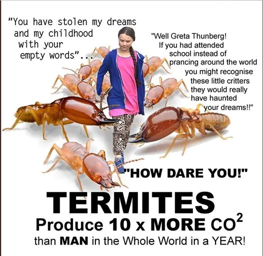 The claim doesn’t stand up to scrutiny, however, as can be seen in an AFP Fact Check that makes the counter-claim that termites produce a tenth of the CO2 that humans do: