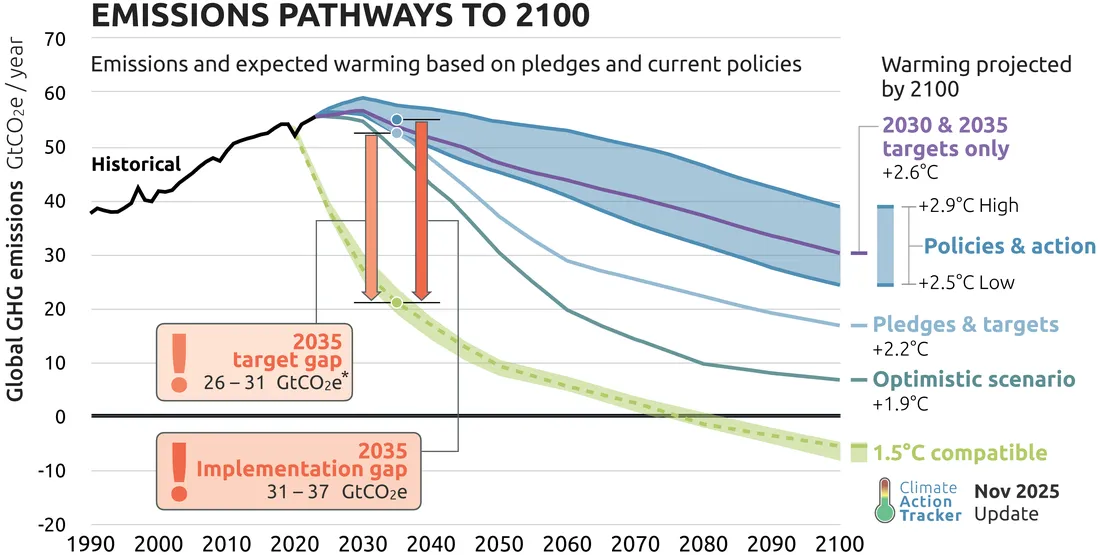 What we should be wanting to do is to stabilise current levels, and ideally bring that increase in global temperature back down. This does seem unlikely though. Globally, we have made some reductions in CO2 emissions, and the current predicted path by 2100 will bring us to between 2.5°C and 2.9°C above pre-industrial levels. However the impacts of just 2 degrees of warming are pretty devastating.