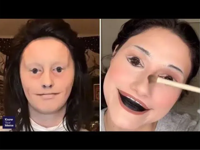 The “uncanny valley” TikTok makeup trend involves people intentionally using makeup to make themselves look almost, but not quite, human, mimicking the unsettling quality seen in robots or CGI characters. Popular techniques include exaggerated facial contours, lifelike yet stiff expressions, and glossy or doll-like skin to highlight the subtle oddities that trigger uncanny valley reactions. Sometimes they pair the look with robotic movements or digital effects.