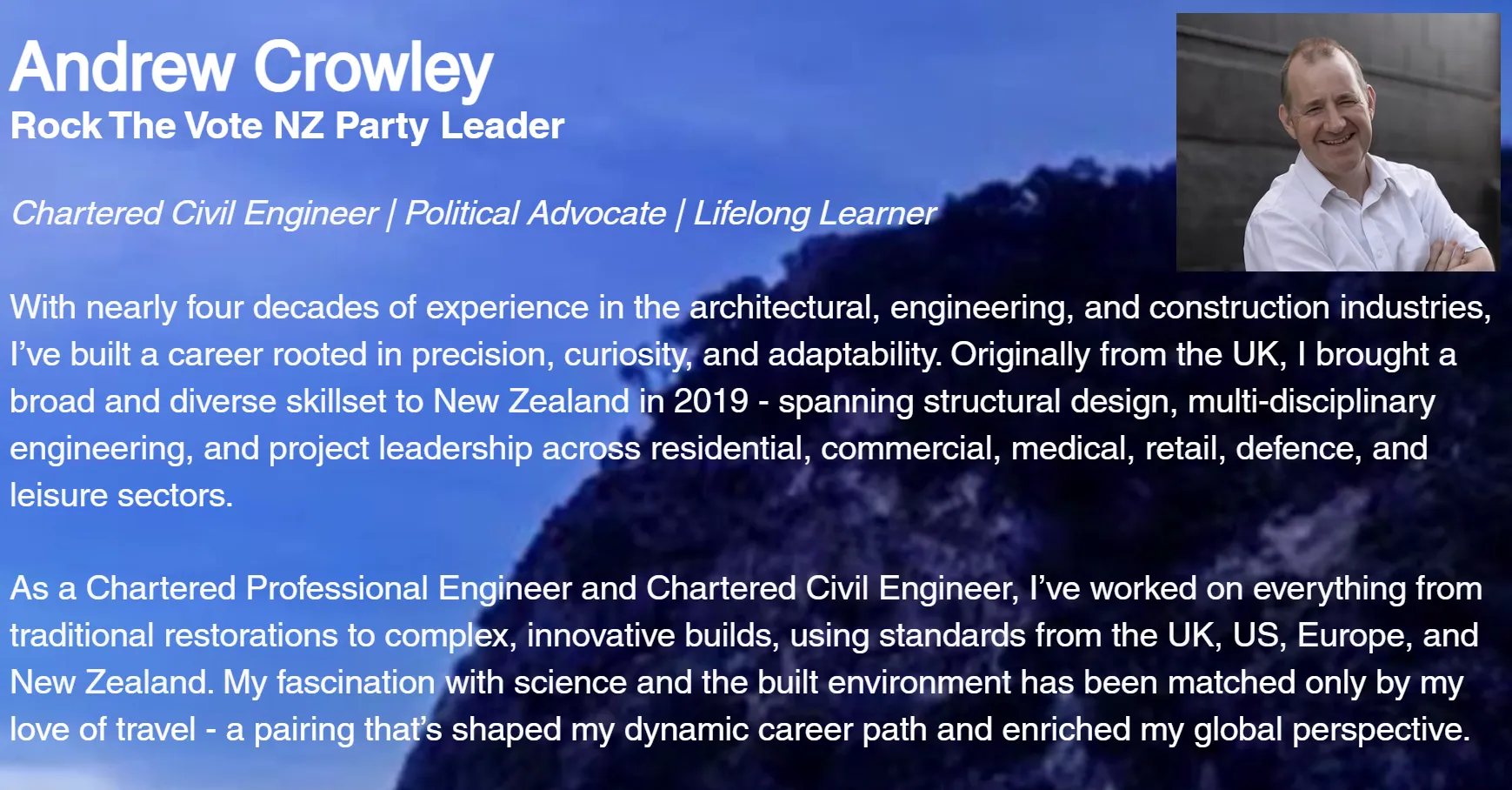 Many of these events are listed as presented by “Rock the Vote NZ”, a fringe political party whose platform is based on “Individual Liberties”, “Decentralization of Power”, “Traditional Values” and “Preserving Kiwi Sovereignty” - four phrases that are something of a dog whistle for those in the know about what they represent. It might not come as much of a surprise to learn that Andrew Crowley, the current party leader of the Rock the Vote Party, is also the organiser of the Auckland Deep Thinkers group, as can be seen from these screenshots from MeetUp and the Rock the Vote website: