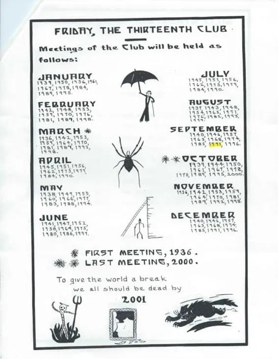 Calendar for Philadelphia’s Friday the 13th club. Time Magazine
